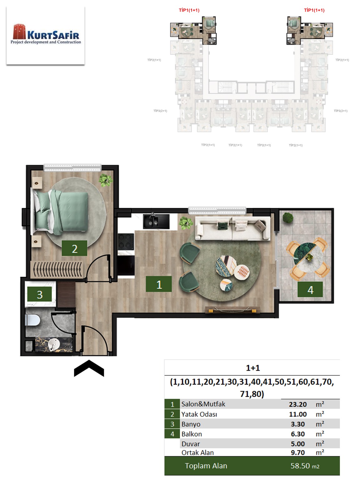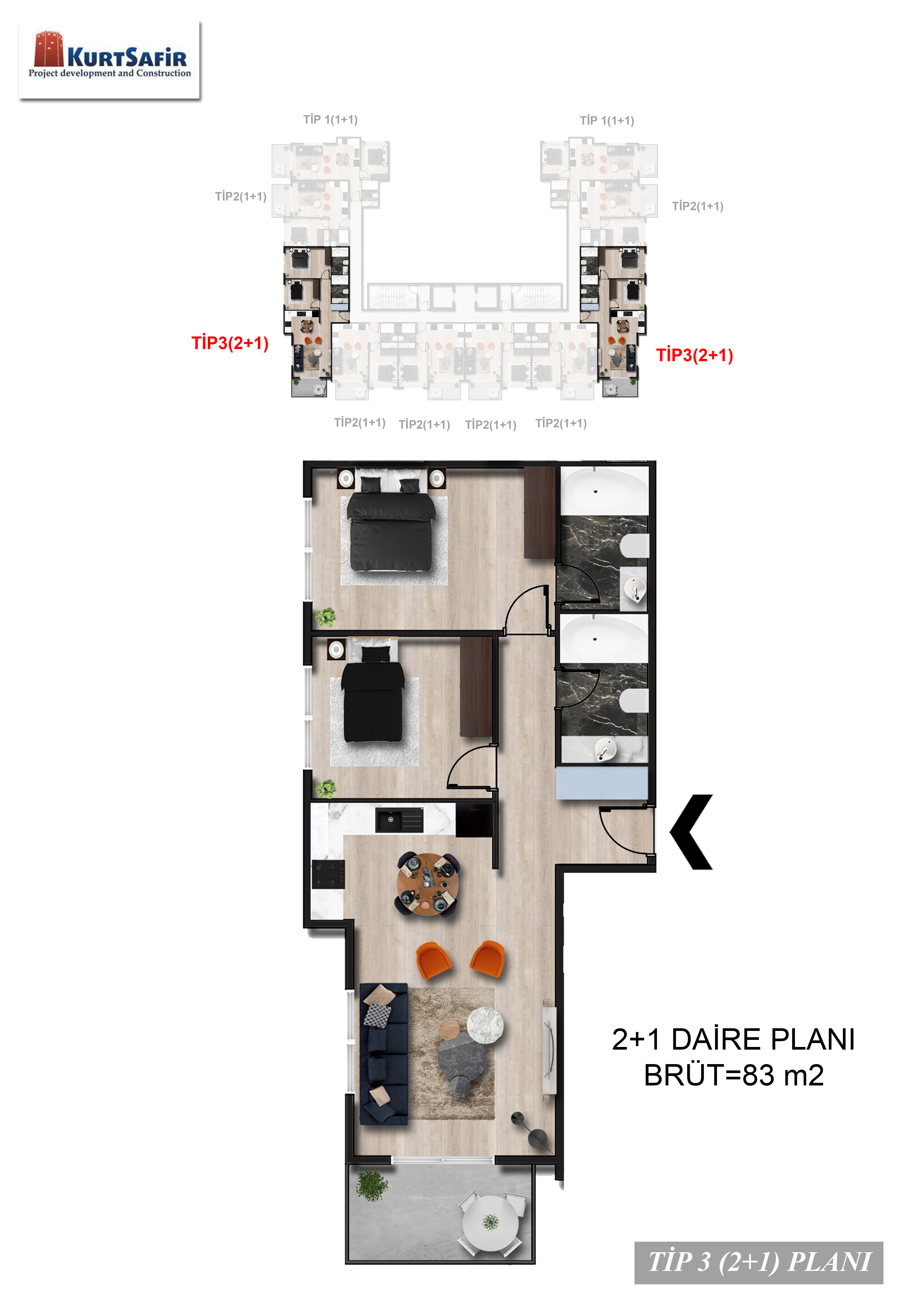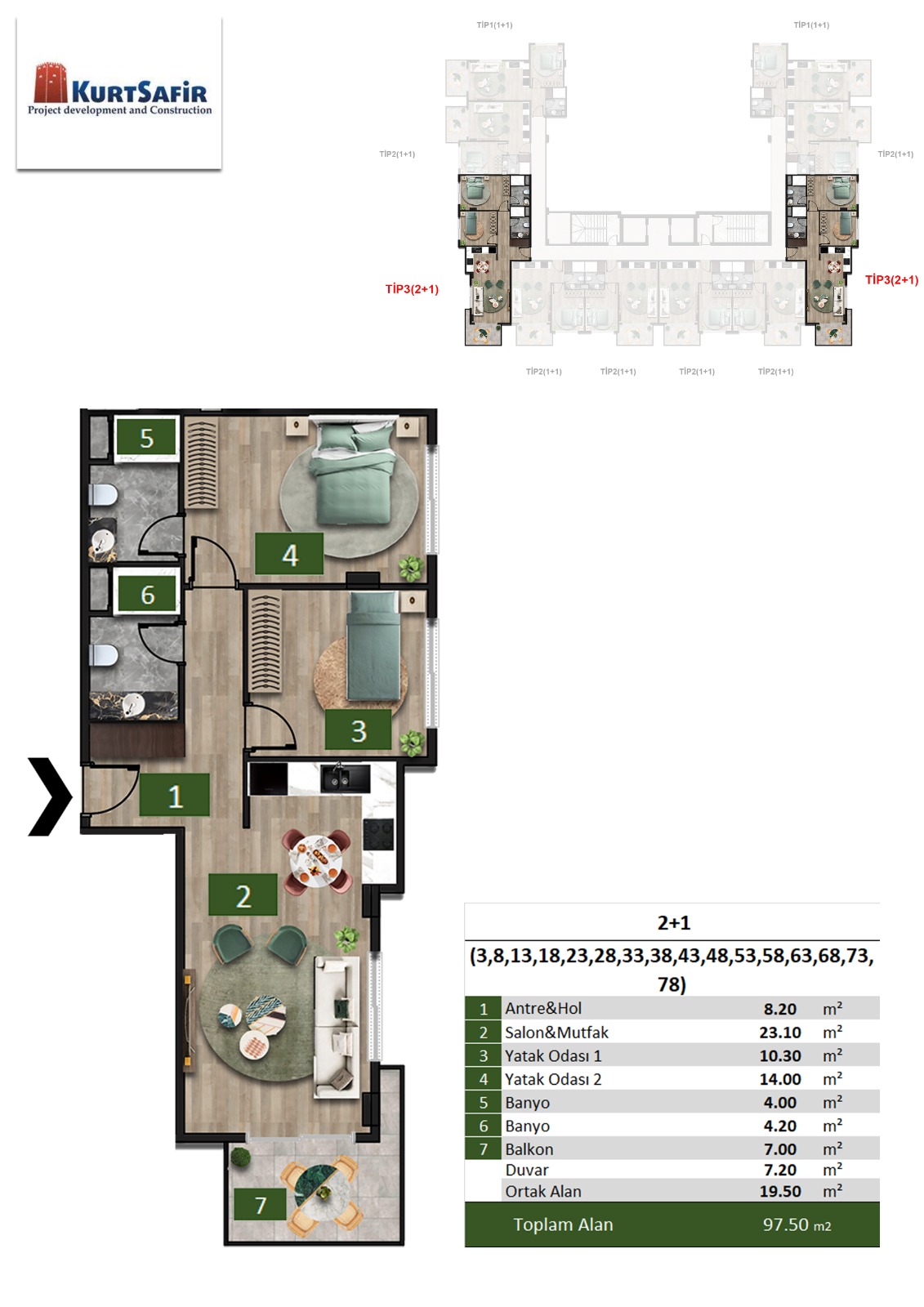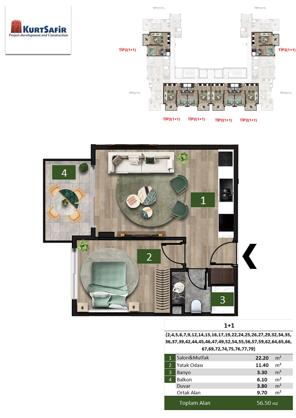 The residence will be located on a 4266 m2 plot of land, will consist of one 9-storey block, which will house 90 apartments of various layouts. The famous Incekum beach is only 850 m away. The entire developed infrastructure of the city - restaurants, markets, shopping malls, pharmacies, parks - is within walking distance.