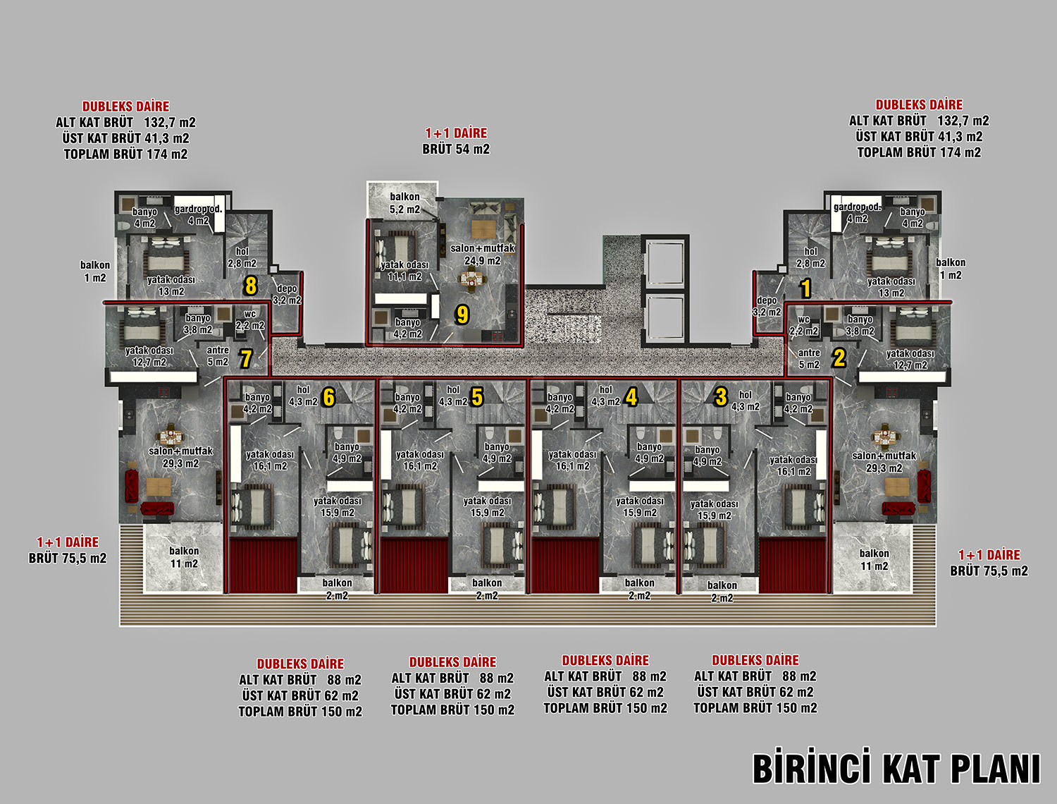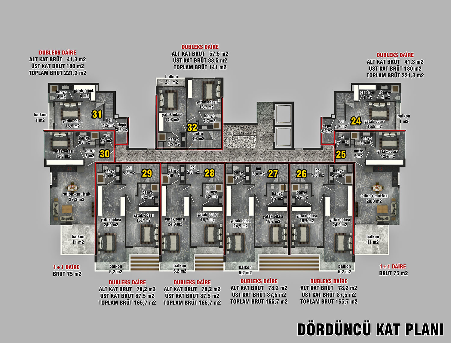 3+1 Duplex Apartments