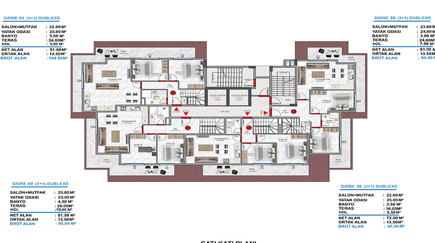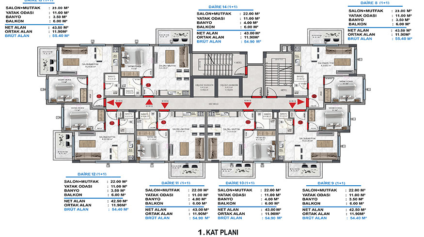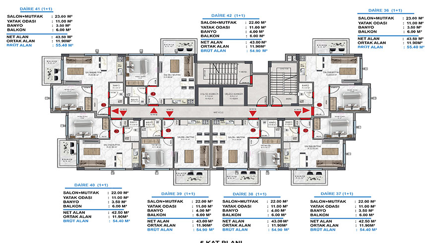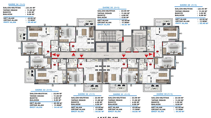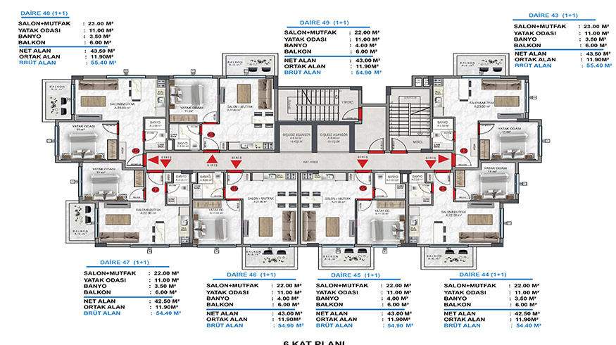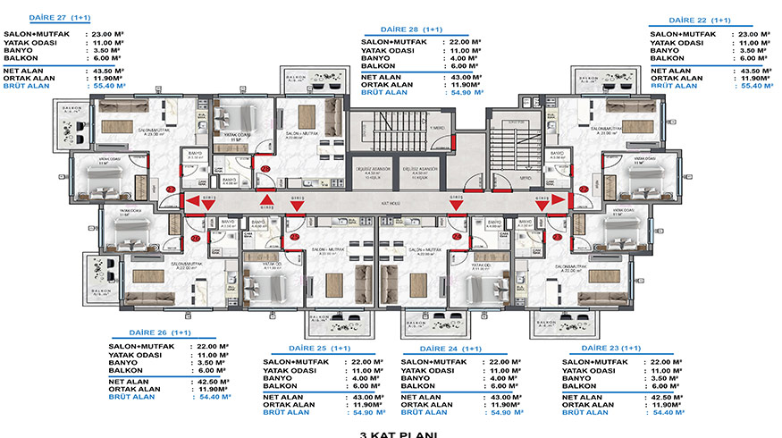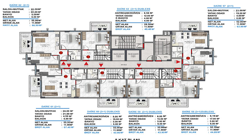 Carmel Park Residence Avsallar occupies 4429 m2, a residential block of 9 floors, a total of 63 apartments.