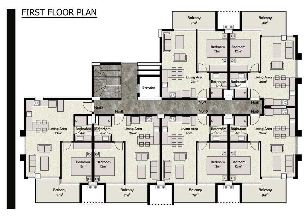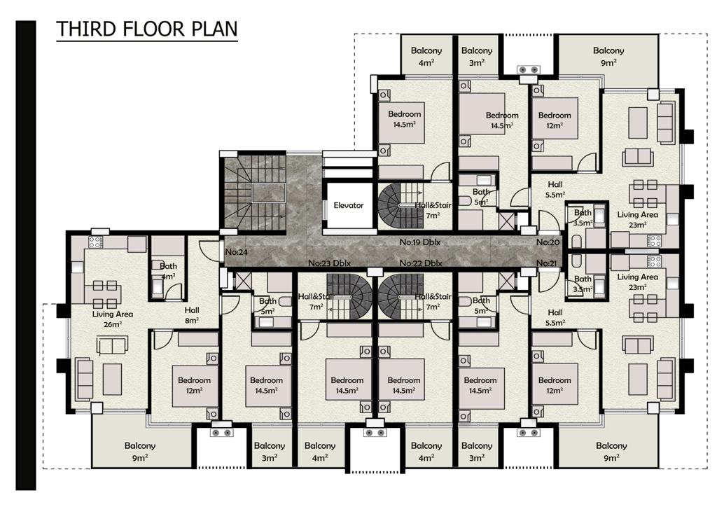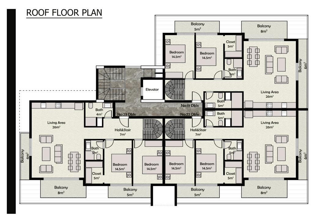 Eksen Life project is built on a land of 1,450 m2. Eksen Life Flat Types;