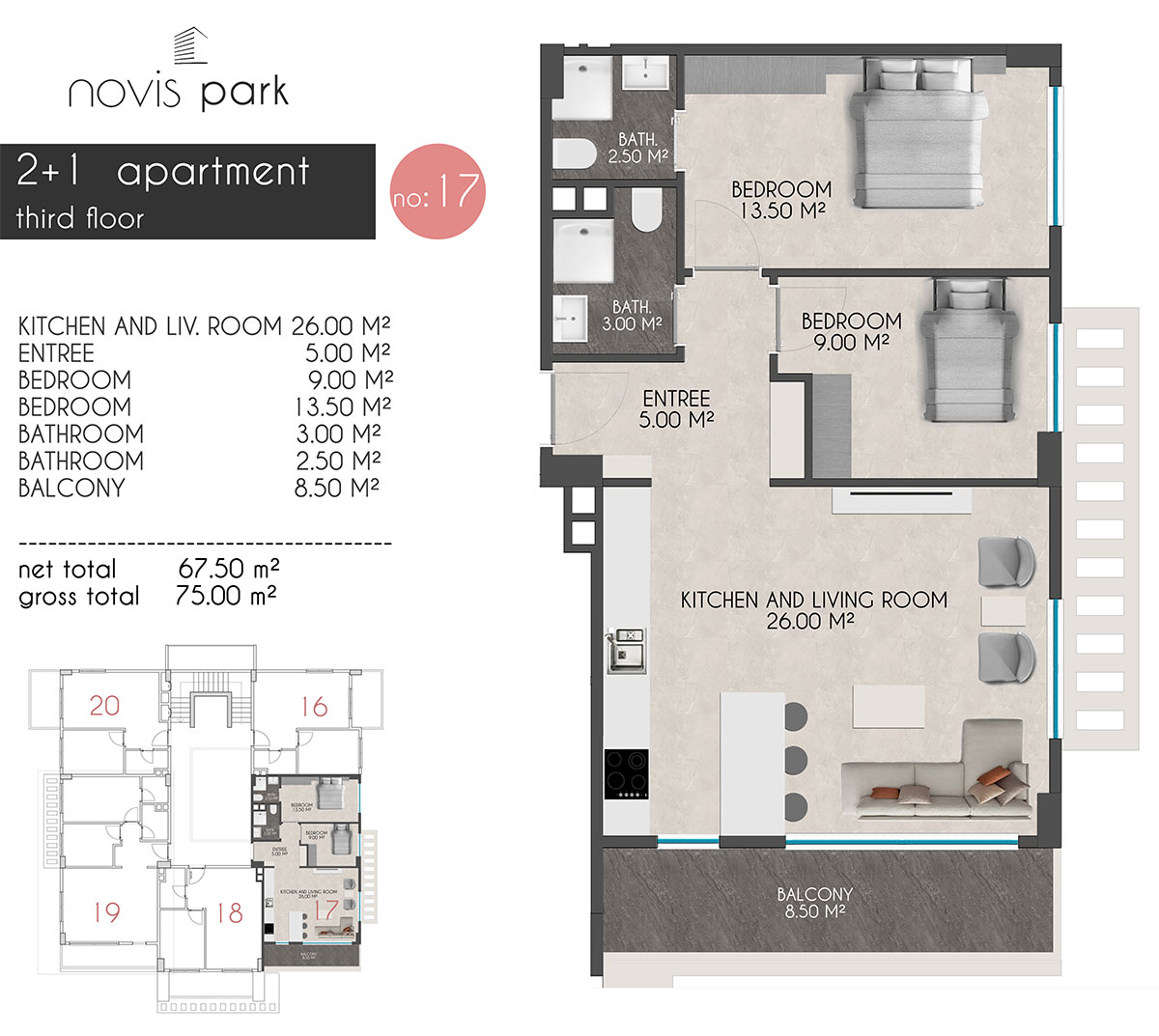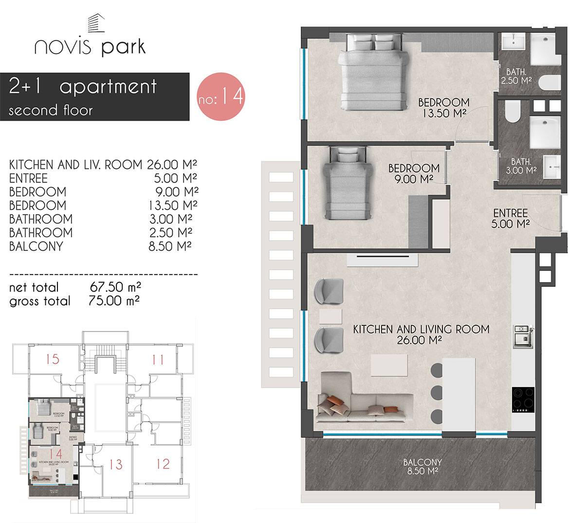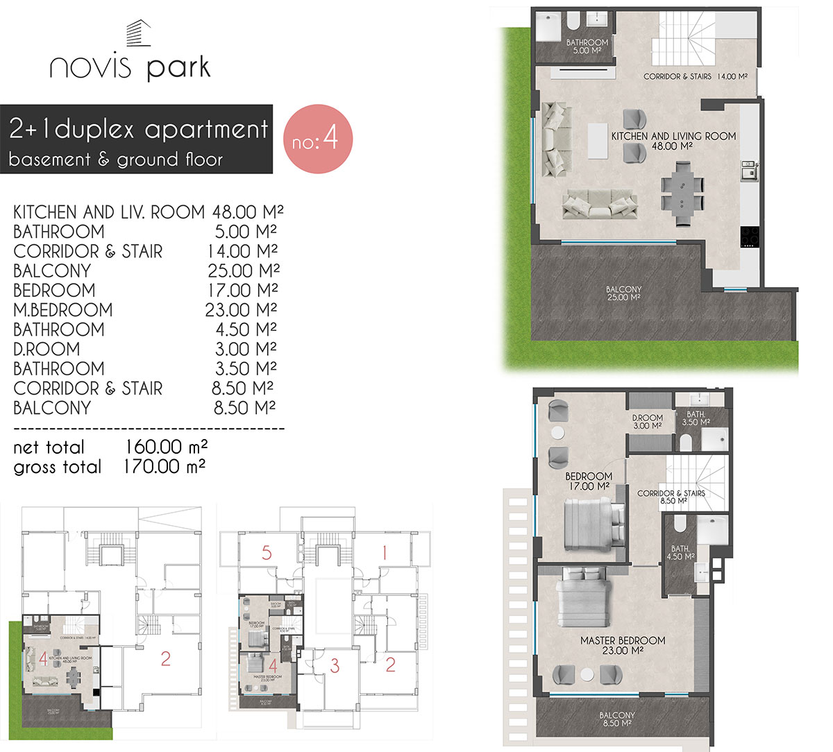 • 2 units, 2+1 Garden Duplex (170 m2)