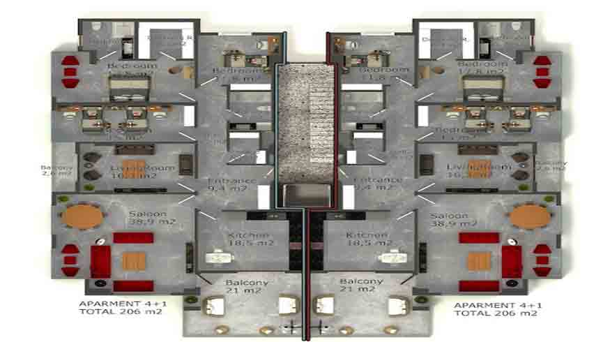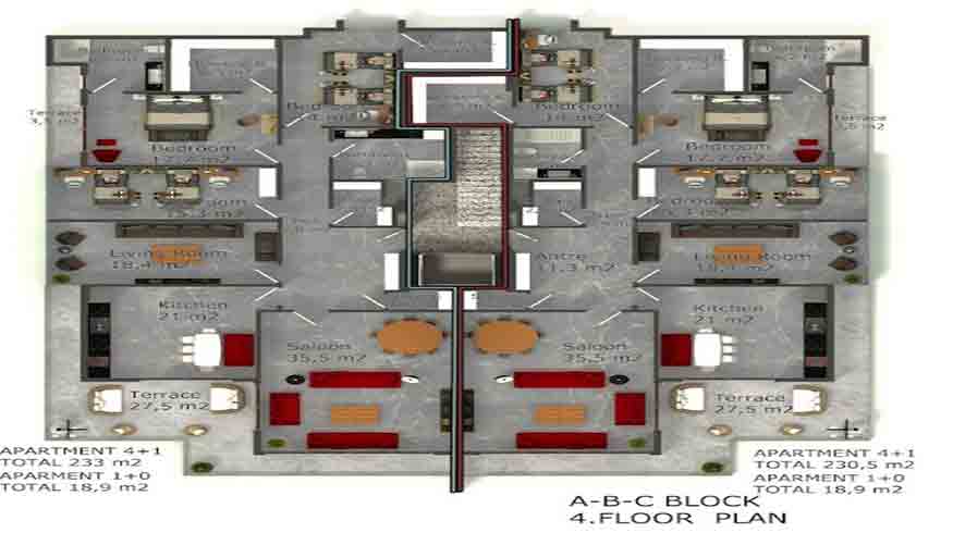 ● 4+1 Single Floor Penthouse 230 m2 and 1+0 Studio Flat 20 m2 is + 250 m2