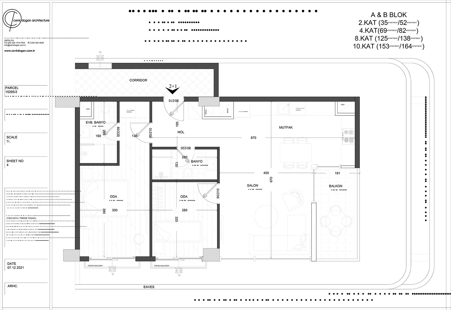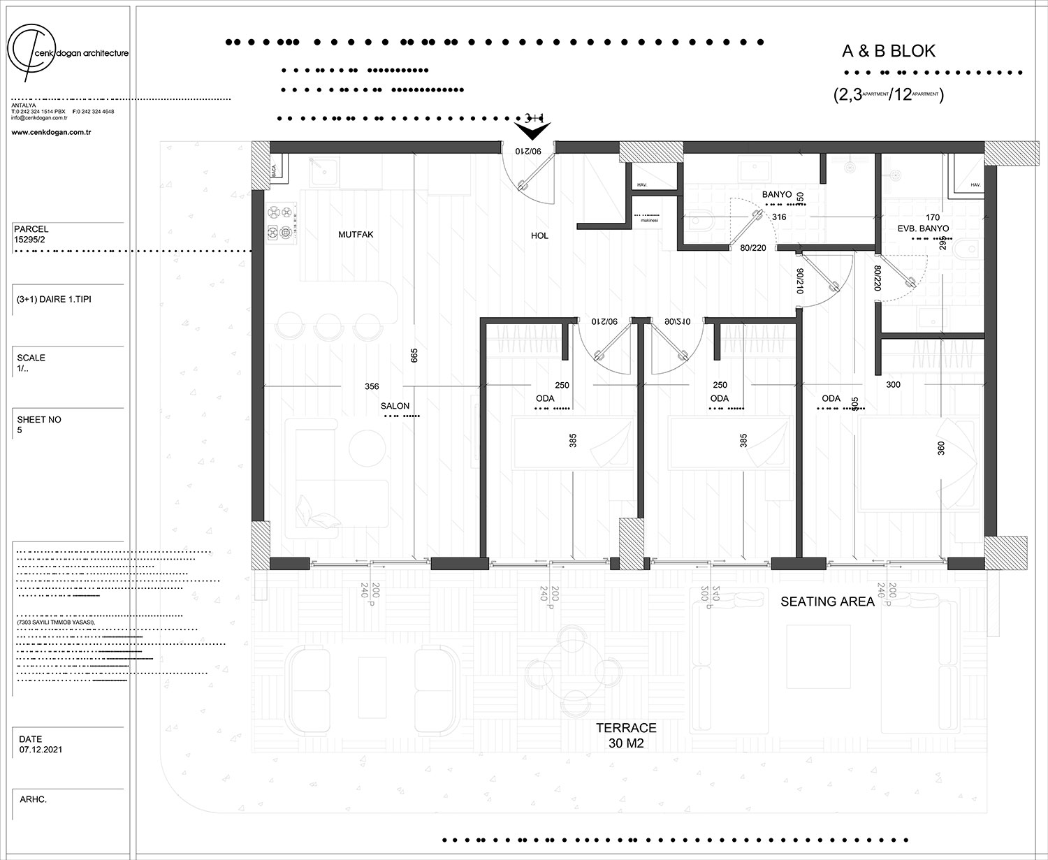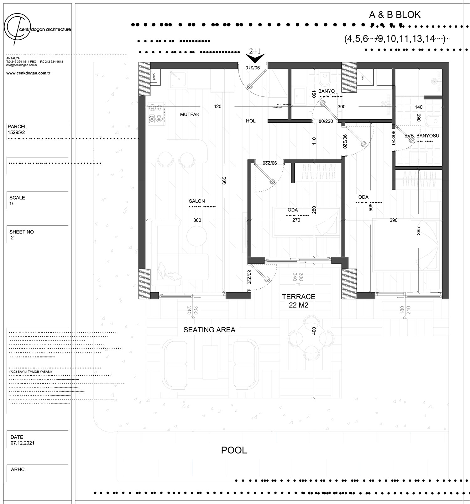 In the project, which includes 174 flats, including 1 office, 1+1's - 87 m², 2+1's 110 to 145 m² and 3+1's 163 to 186 m². All apartments are on the south side and also all of them see the social areas. Are you ready to go on a Cruise with luxury apartments with comfortable and spacious terraces on the upper floors, surrounded by social themes, where you can feel the gardens and villa life on the ground floors?