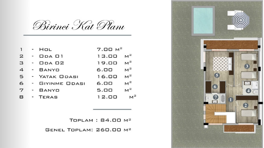 • Three bedrooms and a salon with areas ranging from 141 m2 to 277 m2